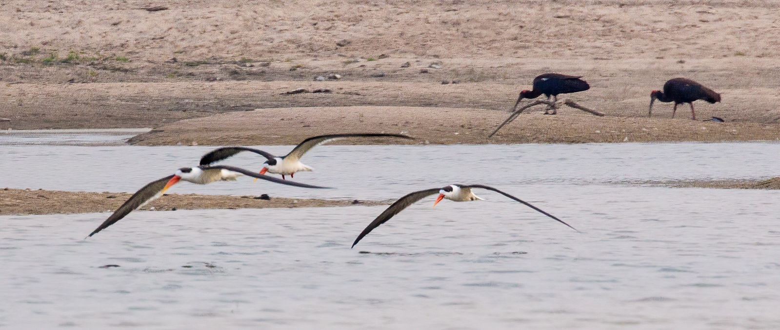 Indian Skimmer, Red-naped Ibis