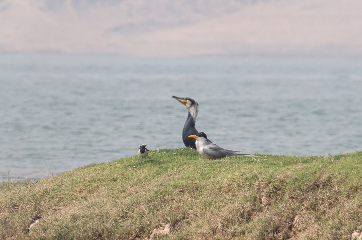 Great Cormorant, White-browed Wagtail, and River Tern
